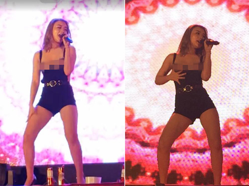 Vì ăn mặc táo bạo, lại nhảy quá sung, Linh Miu đã bị hở vòng một.