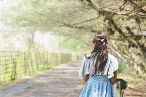 Gần đây, cư dân mạng đang lan truyền hình ảnh bóng lưng của một nữ sinh có mái tóc xoăn dài mặc váy xanh, tay cầm mũ đang bước đi dưới một hàng cây xanh mát trong một ngày nắng đẹp.